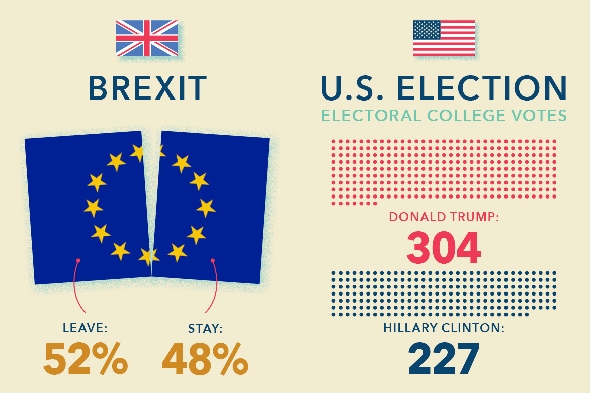 The most memorable events of 2016 were political ones. Brexit sent shock waves through global equities and pushed global bond yields to all-time lows. Better-trending economic data, however, ensured the equity sell-off was short-lived. Even quicker was the market recovery following Donald Trump’s surprise win in the U.S. presidential election. The Dow’s 8% gain in the five weeks after Trump’s victory is the biggest surge following any U.S. presidential election in history.