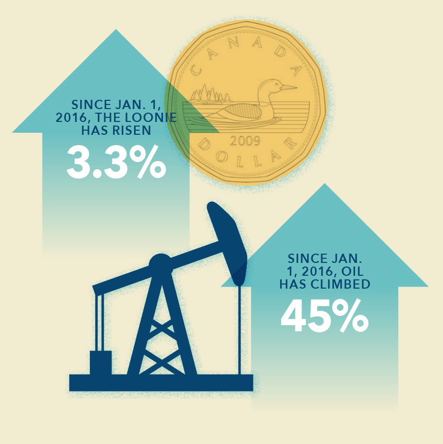 Crude and the loonie often move in tandem, but that began to break down in the second half of 2016. As crude plunged in January the loonie dropped below 69 cents US. Both then reversed and climbed until May, when the Canadian dollar began to drift from a high of 80 cents U.S. back down to 74 cents by year end. Oil rose by $10 in the same period, boosted by November’s OPEC agreement to cut production. Why the divergence? In part, because interest rates are rising faster in the U.S. than here. An improving oil outlook could mitigate the impact on the loonie.
