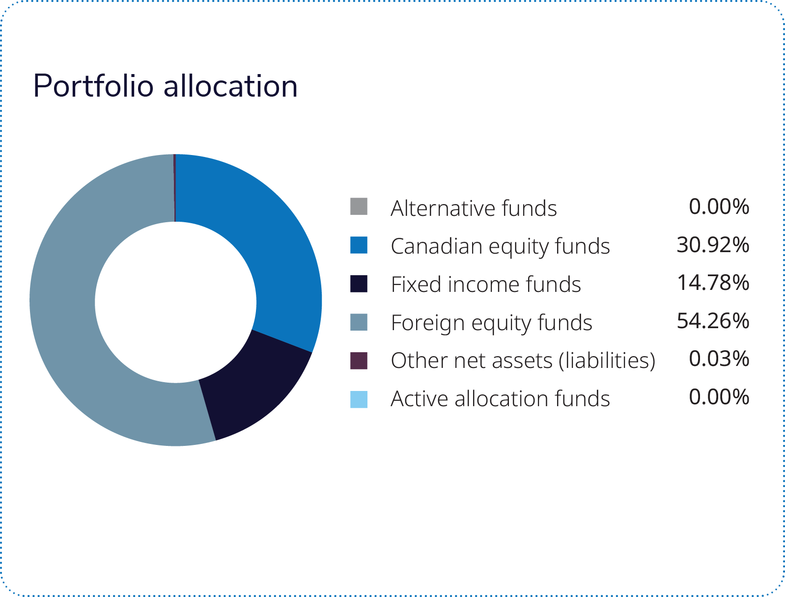 The Mackenzie – IG Low Volatility Canadian Equity Pool, the Mackenzie – IG Equity Pool and the SPDR S&P 500 ETF Trust were the largest contributors. The Mackenzie – IG Low Volatility Canadian Equity Pool outperformed its benchmark, benefiting from an overweight allocation to the energy sector and a relative underweight allocation to the communication services sector. Stock selection in the energy and financials sectors was a leading detractor to the relative outperformance of the fund. The Mackenzie – IG Equity Pool outperformed its benchmark. An underweight allocation to the health care and materials sectors contributed to relative outperformance. The portfolio’s preference for equities over fixed income contributed positively to portfolio performance in Q4 2024. The portfolio also benefited from its sizable allocation to the SPDR S&P 500 ETF Trust.