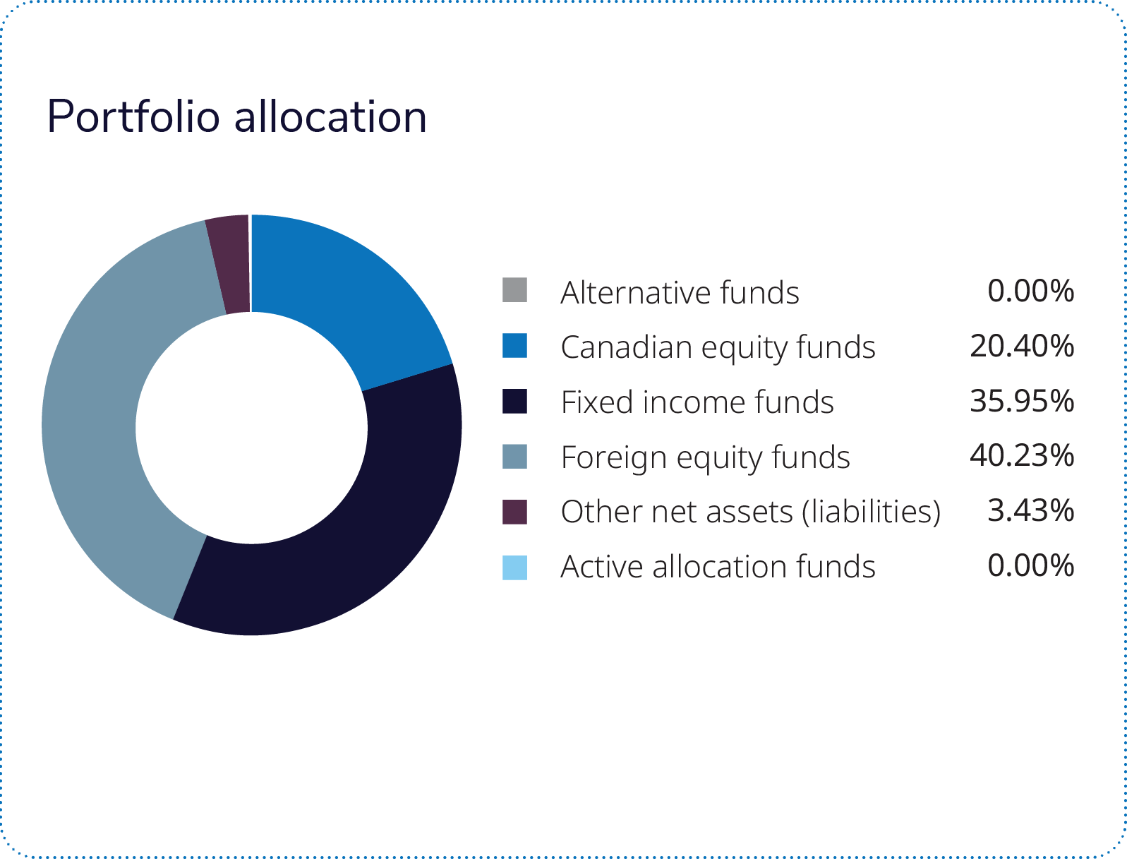 Asset allocation positioning was additive in the portfolio over the quarter. We maintained an overweight equity position, and we continued to be underweight duration. Sector positioning in U.S. equities was positive over the quarter. An overweight position in the consumer discretionary sector and an underweight position in the health care sector were additive, while an underweight position in the financials sector detracted. Country positioning was also additive. Within equities, overweight allocations to Taiwan and the U.S. were additive to performance, while overweight allocations to Spain and Sweden detracted as growth was slower in the Eurozone over the quarter. Manager selection weighed on returns over the period. An allocation to the T. Rowe Price – IG U.S. Equity Pool detracted as the fund underperformed its benchmark.