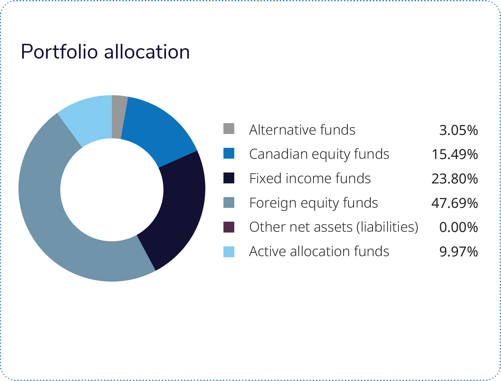 Commissions, fees and expenses may be associated with mutual fund investments. Read the prospectus and speak to an IG Advisor before investing. The rate of return is the historical annual compounded total return as of December 31, 2024, including changes in value and reinvestment of all dividends or distributions. It does not take into account sales, redemption, distribution, optional charges or income taxes payable by any security holder that would have reduced returns. Mutual funds are not guaranteed, values change frequently, and past performance may not be repeated. Mutual funds and investment products and services are offered through Investors Group Financial Services Inc. (in Québec, a Financial Services firm). Any additional investment products and brokerage services are offered through Investors Group Securities Inc. (in Québec, a firm in Financial Planning). Investors Group Securities Inc. is a member of the Canadian Investor Protection Fund.