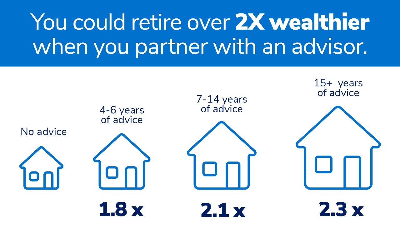 According to research by CIRANO,1 investors with a financial advisor get better long-term returns. After four years of working with an advisor, investors have on average 1.8 times more money than someone who doesn’t have an advisor. After 15 years, that figure rises to 2.3 times more money than someone without an advisor.