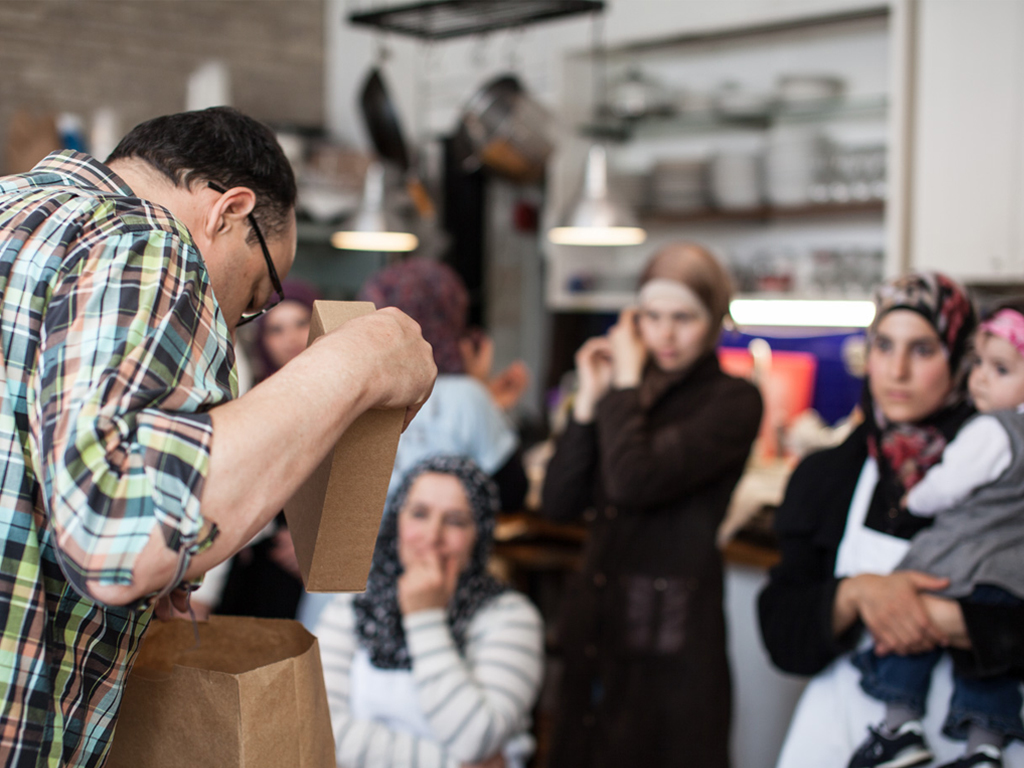 Au printemps dernier, Len Senater a appris que de nombreux réfugiés syriens nouvellement arrivés au Canada habitaient dans des hôtels où il n’y avait pas de cuisine pour préparer leurs repas. Propriétaire de Depanneur, un espace accueillant des événements gastronomiques éphémères dans le quartier West End, à Toronto, il a voulu leur prêter ses fourneaux. Il ne parlait pas arabe et n’avait aucun lien avec la communauté syrienne, mais il pouvait compter sur l’aide de bénévoles motivés. L’un d’eux l’a mis en contact avec Rahaf Alakbani, 25 ans, et son mari, Esmaeel Abofakher, 29 ans, deux réfugiés syriens installés au Canada en février 2015. Le couple a repéré plusieurs femmes qui désiraient cuisiner et les a emmenées au Depanneur.