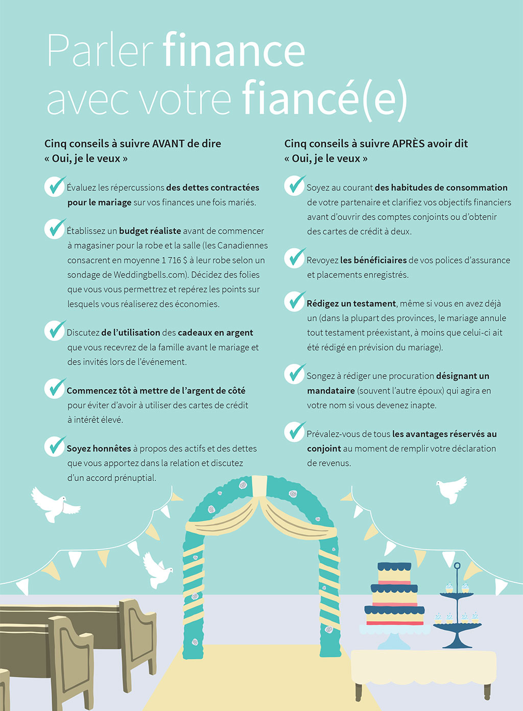Le financement d’un mariage d’envergure – le vôtre ou celui de votre enfant – peut décourager. Traditionnellement, les parents de la mariée assumaient la majeure partie de la facture, mais les temps ont changé. Il importe d’avoir une bonne conversation sur le financement du mariage, mais aussi des fiançailles, de la répétition qui précède les noces, de la soirée qui suit et du voyage de noces, avant de s’engager à fond dans la planification.