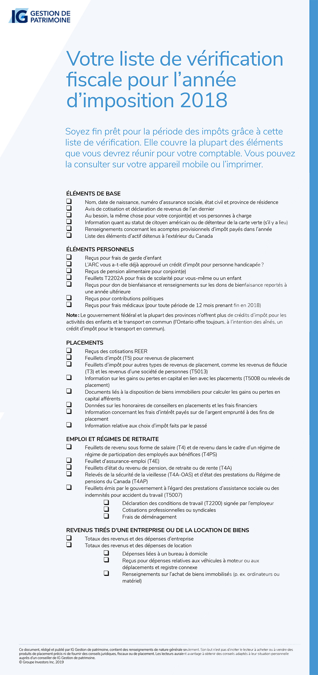 Votre liste de vérification fiscale pour l’année d’imposition 2018