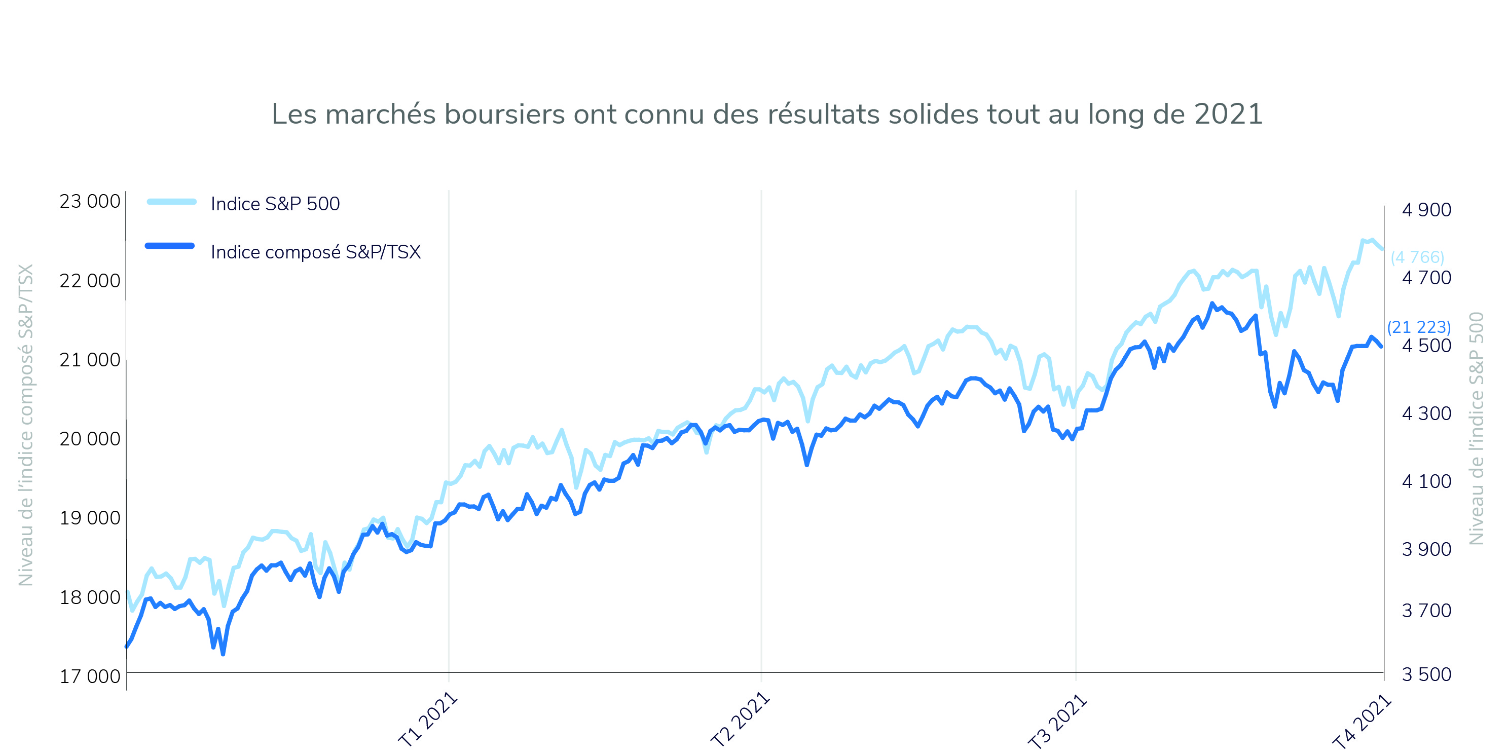 ② Les marchés boursiers ont récompensé les investisseurs en finissant l'année 2021 en force.
