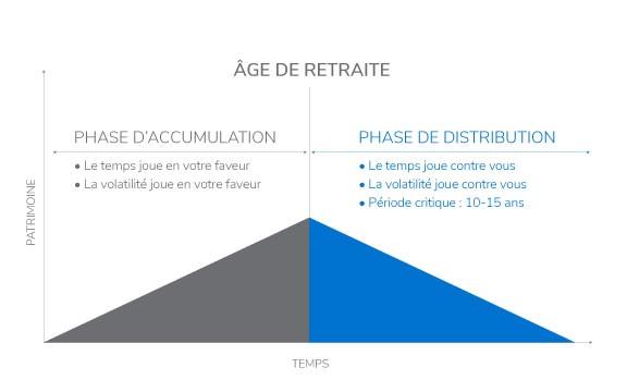 Le rééquilibrage vous aide à atteindre vos objectifs tout au long de votre vie. Au cours de la phase d’accumulation de la vie, vous essayez de faire croître votre actif. À la phase de distribution, vous transformez votre actif en source génératrice de revenu pour financer votre mode de vie à la retraite.