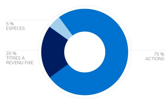 Si la composante actions de ce portefeuille devait augmenter beaucoup plus vite que les composantes titres à revenu fixe et espèces, l’équilibrage s’en trouverait détraqué :