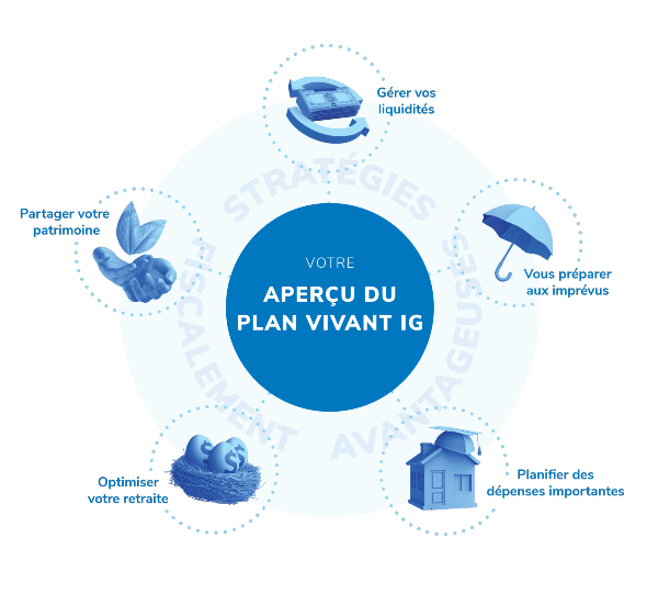 Un bon plan financier vous permet de voir les lacunes et les occasions clairement et en toute objectivité. Le Plan vivant IG repose sur l’idée que la vie n’est pas statique. Tandis que la vie évolue, votre plan doit demeurer dynamique pour que vous restiez en voie d’atteindre vos objectifs et de vivre pleinement votre vie.