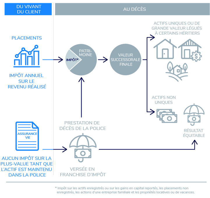 Certains investisseurs ont des revenus et des actifs plus que suffisants pour subvenir à leurs besoins à la retraite et cherchent naturellement à faire un legs significatif à leurs proches ou aux organismes de bienfaisance qu’ils appuient. Même si bien des gens estiment que les placements, les biens immobiliers ou les actifs d’une entreprise sont les meilleurs moyens d’augmenter la valeur de leur succession, les trois entraînent des conséquences fiscales chaque année ainsi qu’au moment de leur transfert aux bénéficiaires.