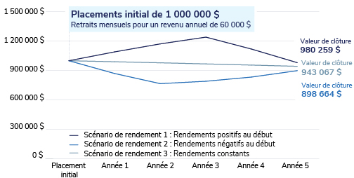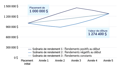 Examinons trois scénarios hypothétiques pour illustrer le risque lié à la séquence des rendements.