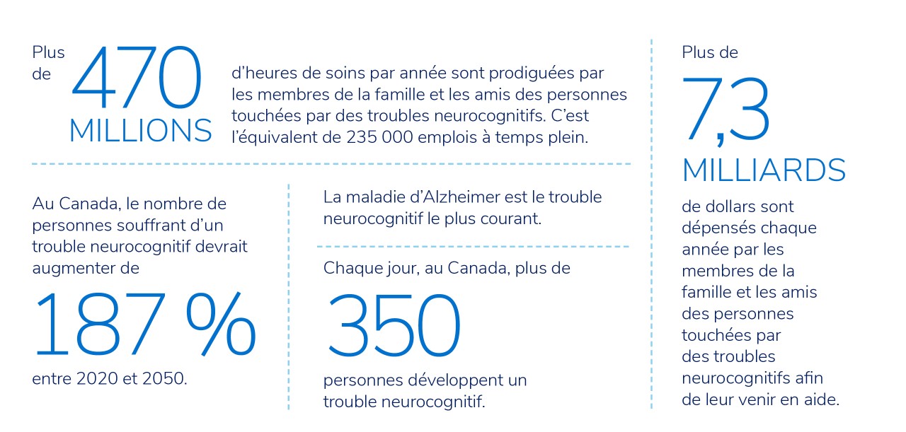Au Canada, plus de 650 000 personnes vivent avec un trouble neurocognitif. Et nous sommes toutes et tous touchés d’une certaine façon. Aidez-nous à améliorer la qualité de vie de ces personnes.
