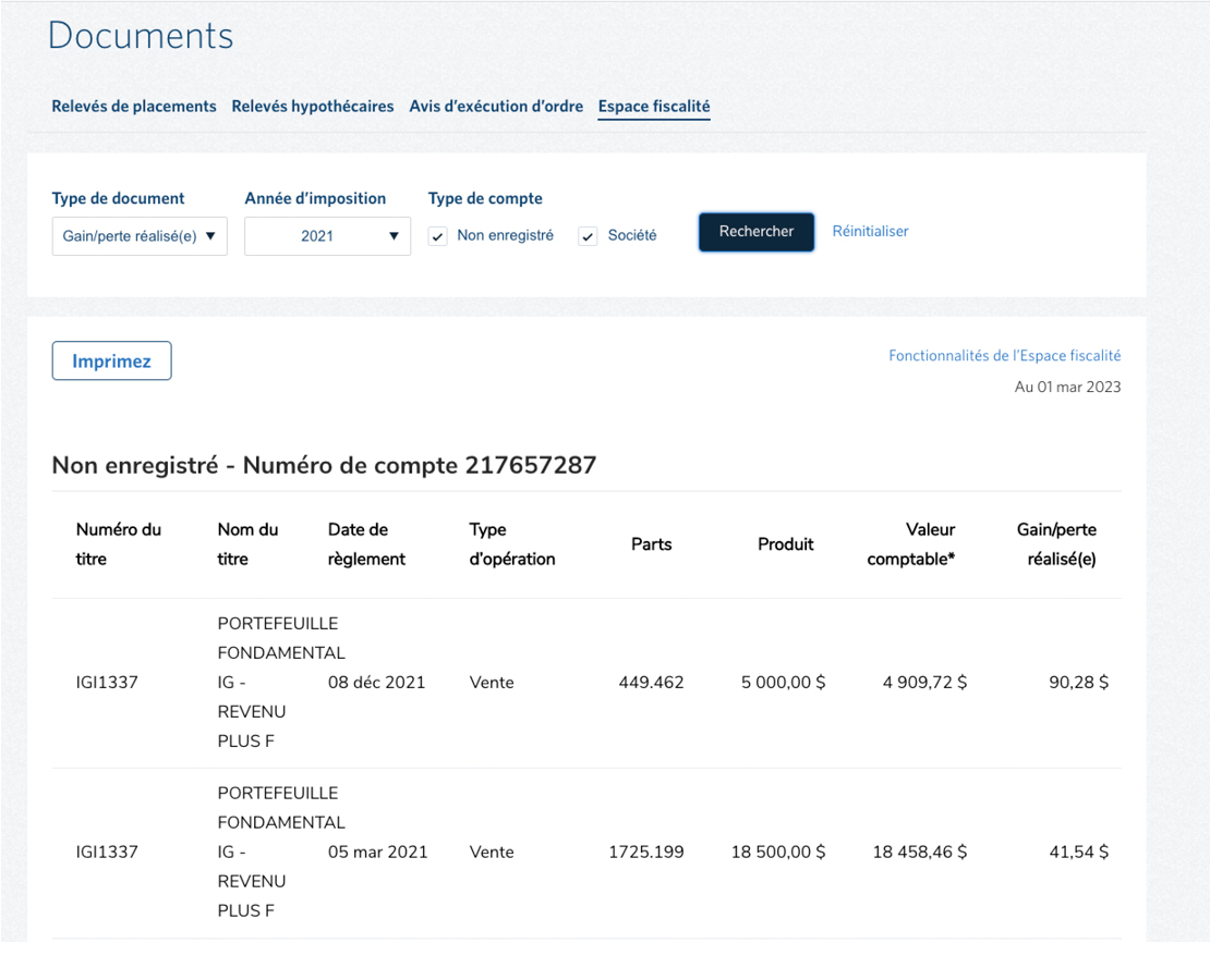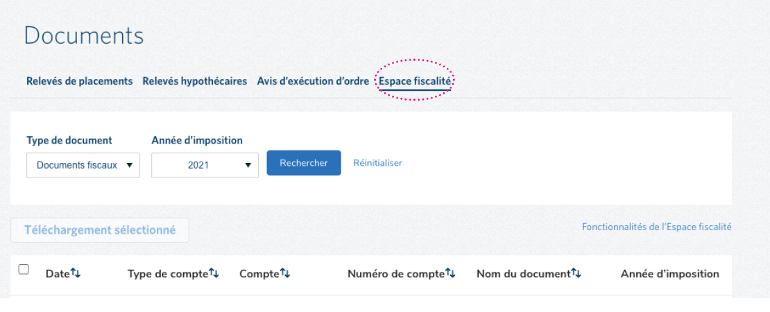 Visitez l’Espace fiscalité, dans Accès en ligne, pour trouver les feuillets et les rapports requis pour produire votre déclaration de revenus annuelle.